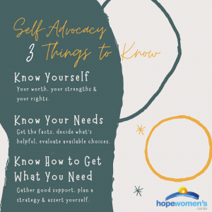 Hope‘s work is the work of advocacy. We support, we listen, and we gently invite our women to uncover their strengths and USE THEM! We nurture self-advocacy in our women, because effective self-advocacy has the power to break unhealthy cycles, behaviors, and mindsets. Maybe you need to strengthen your ability to self-advocate. Here are three things you need to know.